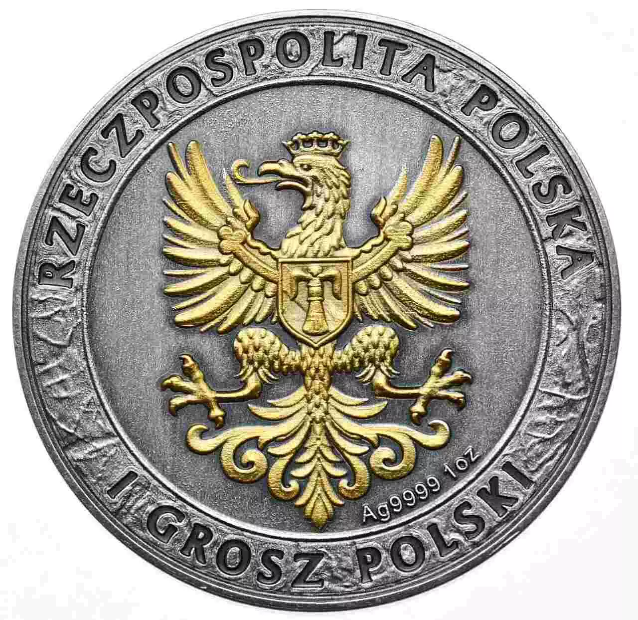 Awers przedstawia pozłoconego Orła Rzeczpospolitej.