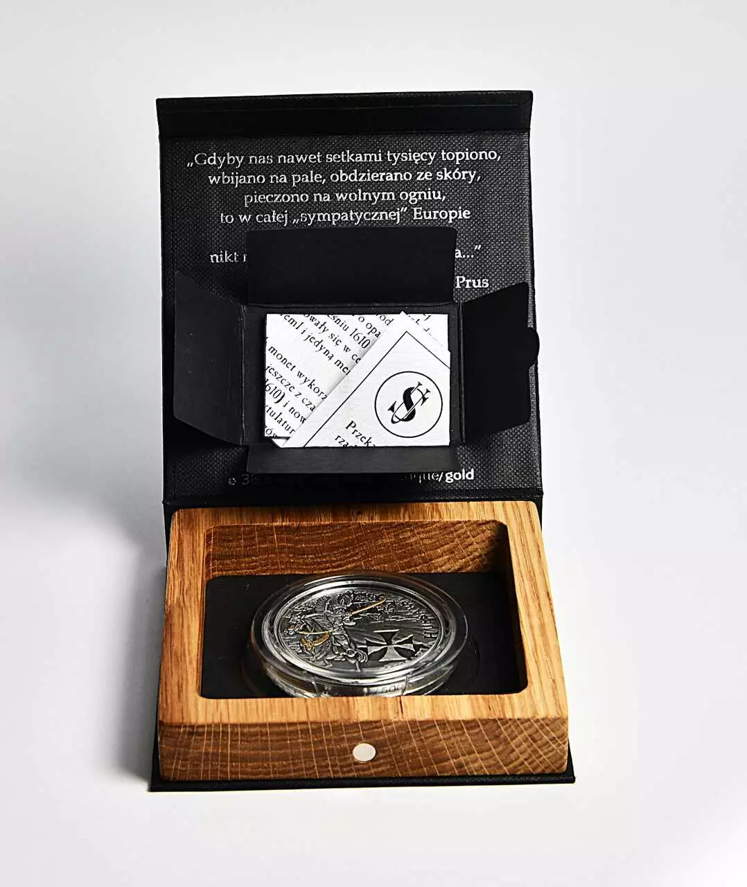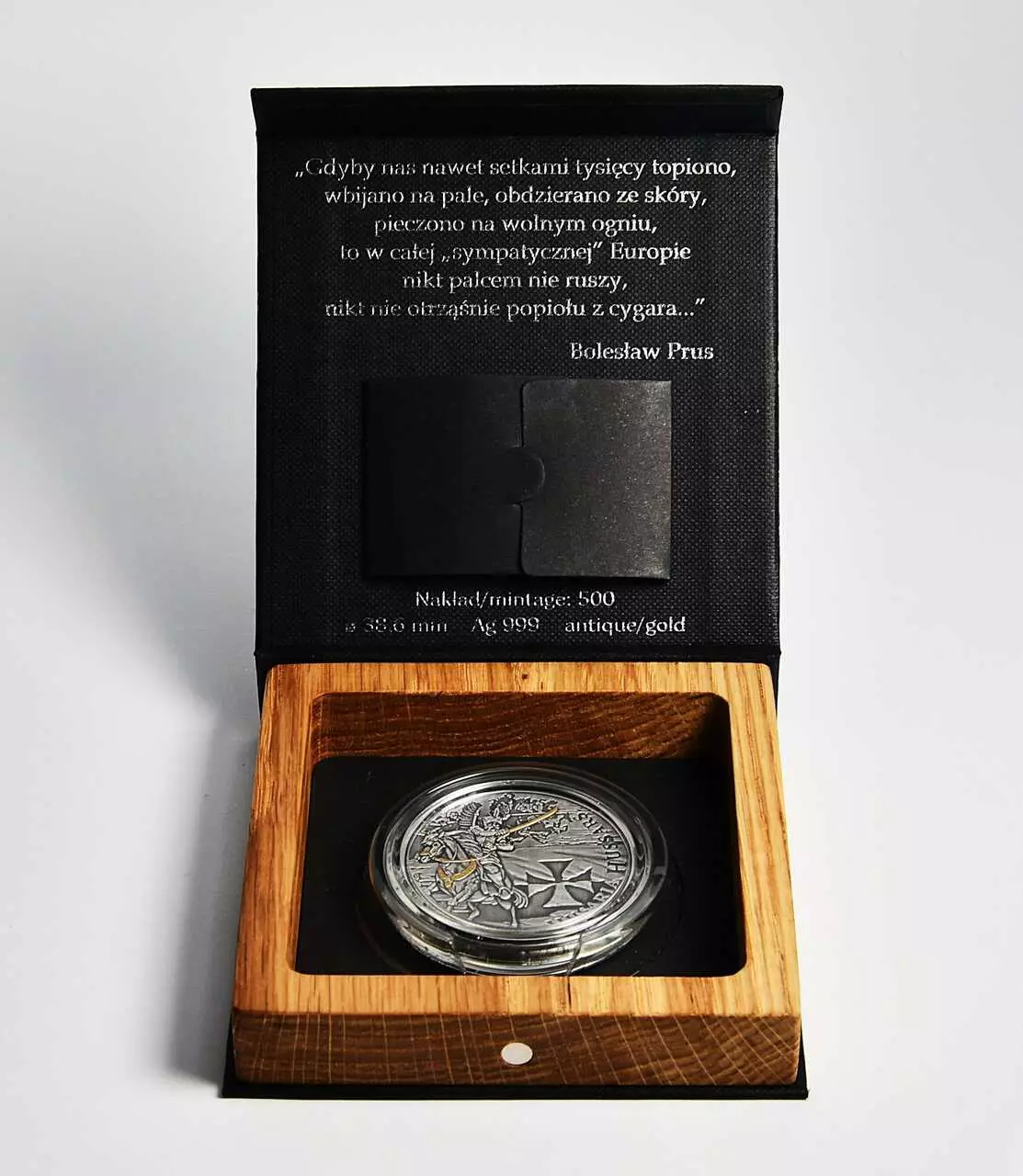 Husaria 3 uncje srebra Antique Gold to wyjątkowa walor numizmatyczny, który łączy w sobie wysoką jakość wykonania, unikalny design oraz wartość inwestycyjną. Zainspirowana legendarną formacją kawaleryjską Rzeczypospolitej Obojga Narodów – husarią, medal ten stanowi hołd dla jednej z najskuteczniejszych jednostek wojskowych w historii. Wykonana z 1 uncji srebra próby 999,9, posiada efektantyczne wykończenie w technice Antique Gold, która nadaje jej elegancki, zabytkowy wygląd.