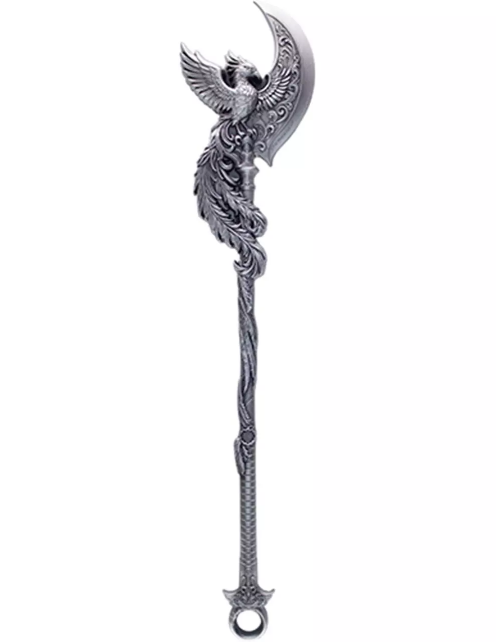 Phoenix Arcblade swoim wyglądem przypomina majestatyczną halabardę z długim, zakrzywionym ostrzem. Z drugiej strony osadzono figurę feniksa, będącego symbolem odrodzenia. Całość wyglądająca jak broń nadaje numizmatowi wyjątkowego charakteru, łączącego w sobie wysoką jakość wykonania z głęboką symboliką.