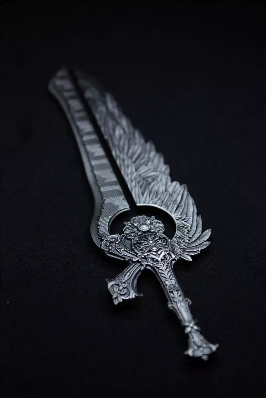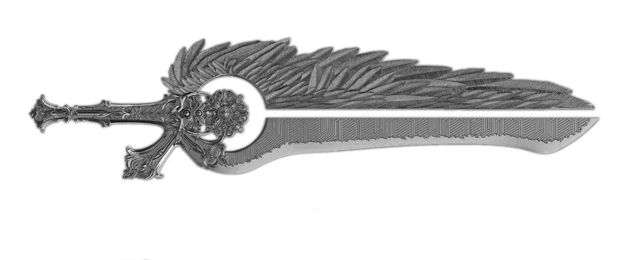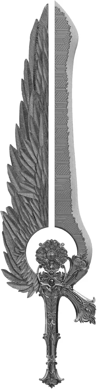 Sword of St.Uriel przestawia miecz, a jegogłownia rozdwaja się na dwie części- ostrze oraz anielskie pióro.