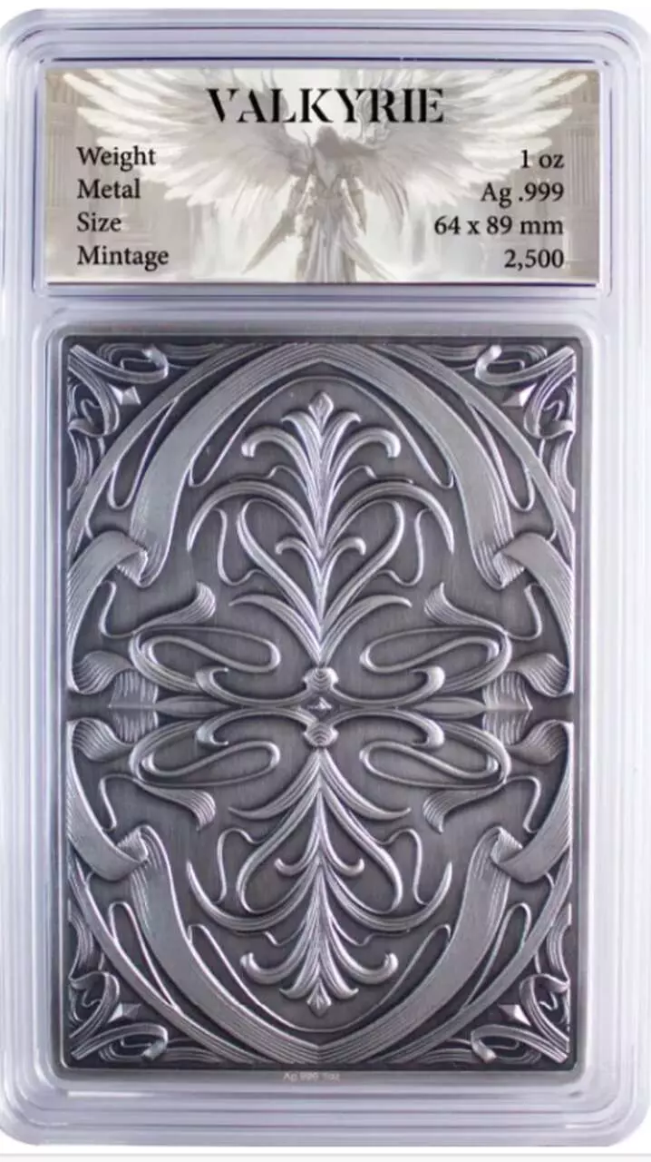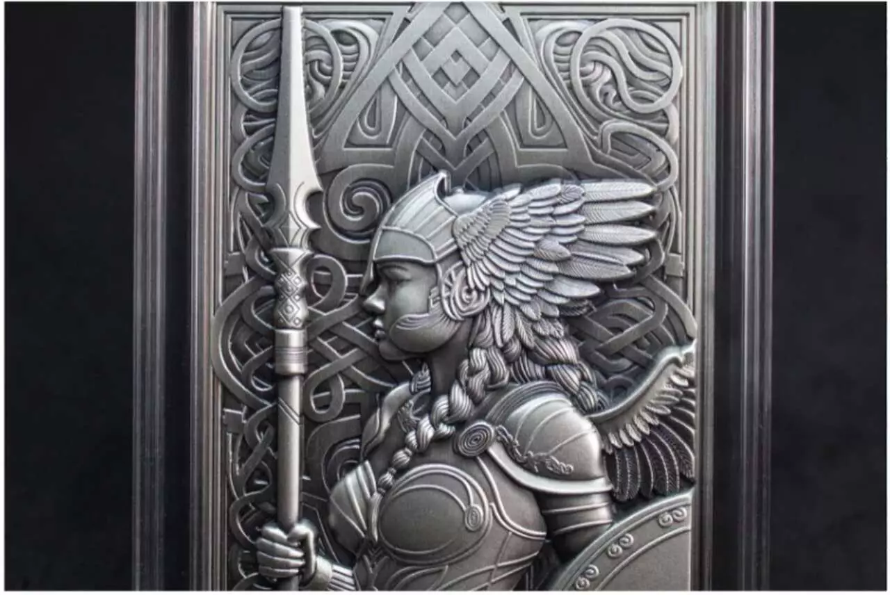 Valkyrie została wybita z czystego srebra próby 999 w formie sztabki i waży jedną uncję trojańską.