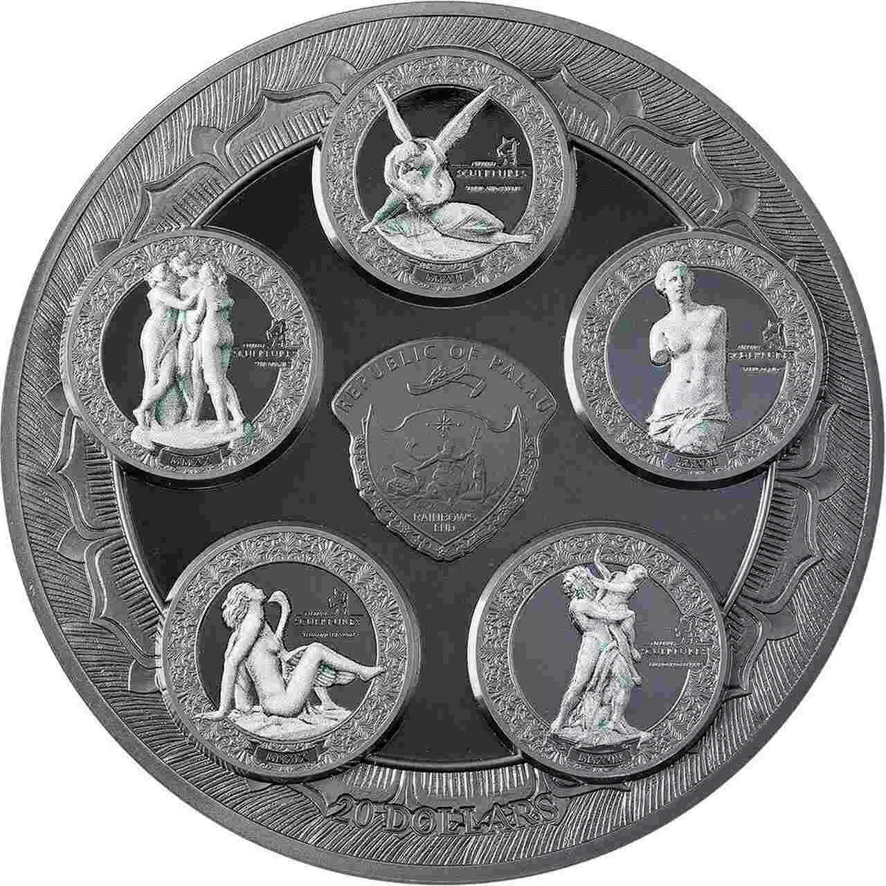 Na awersie znajdują się wszystkie rzeźby z serii oraz herb Palau pośrodku.
