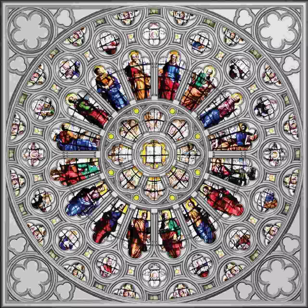 The Rose Window Westminster Abbey zawiera 150 gramów srebra .999 i została wybita w jakości Proof.