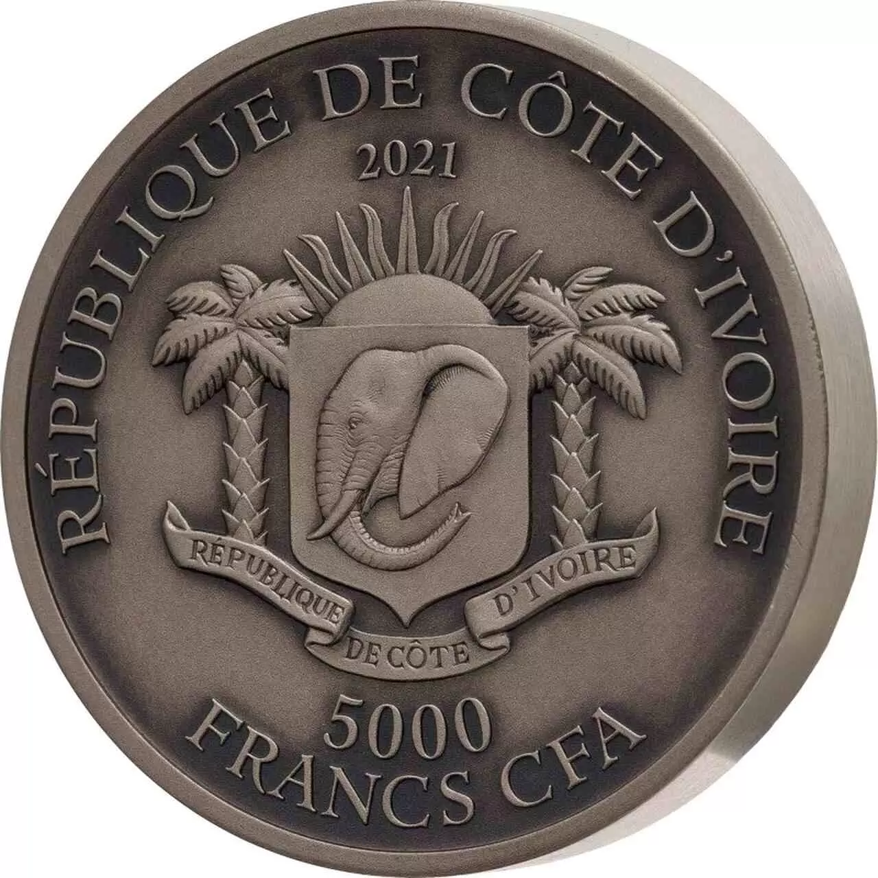 Awers zdobi herb Wybrzeża Kości Słoniowej.