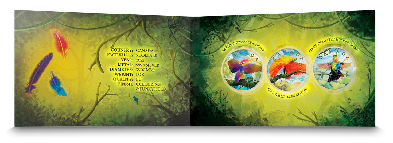 Przedstawiamy zestaw srebrnych monet Kanadyjski Liść Klonowy w nowej odsłonie- Colours of Paradise. ZESTAW Kanadyjski Liść Klonowy Colours of Paradise to nowa edycja, w której zastosowano efekt Funky Holo oraz kolorowanie, by nadać monecie nowego, nietuzinkowego znaczenia.