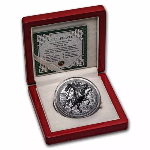 Przedstawiamy srebrną monetę upamiętniającą Zhang Fei, chińskiego generała wojskowego. Polityk ten służył  poddowództwem Liu Beia w późnym okresie Wschodniej Dynastii Han i na początku okresu Trzech Królestw w Chinach. Zhang Fei był gigantem człowieka, który dzierżył włócznię o długości prawie dziesięciu stóp.