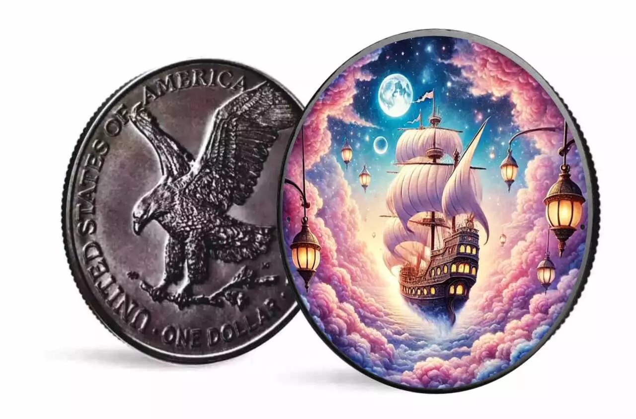 Candy Ship to srebrny walor próby 999 o wadze 1 uncji. Moneta została poddana zabiegowi oksydacji oraz posiada kolorowy nadruk UV.