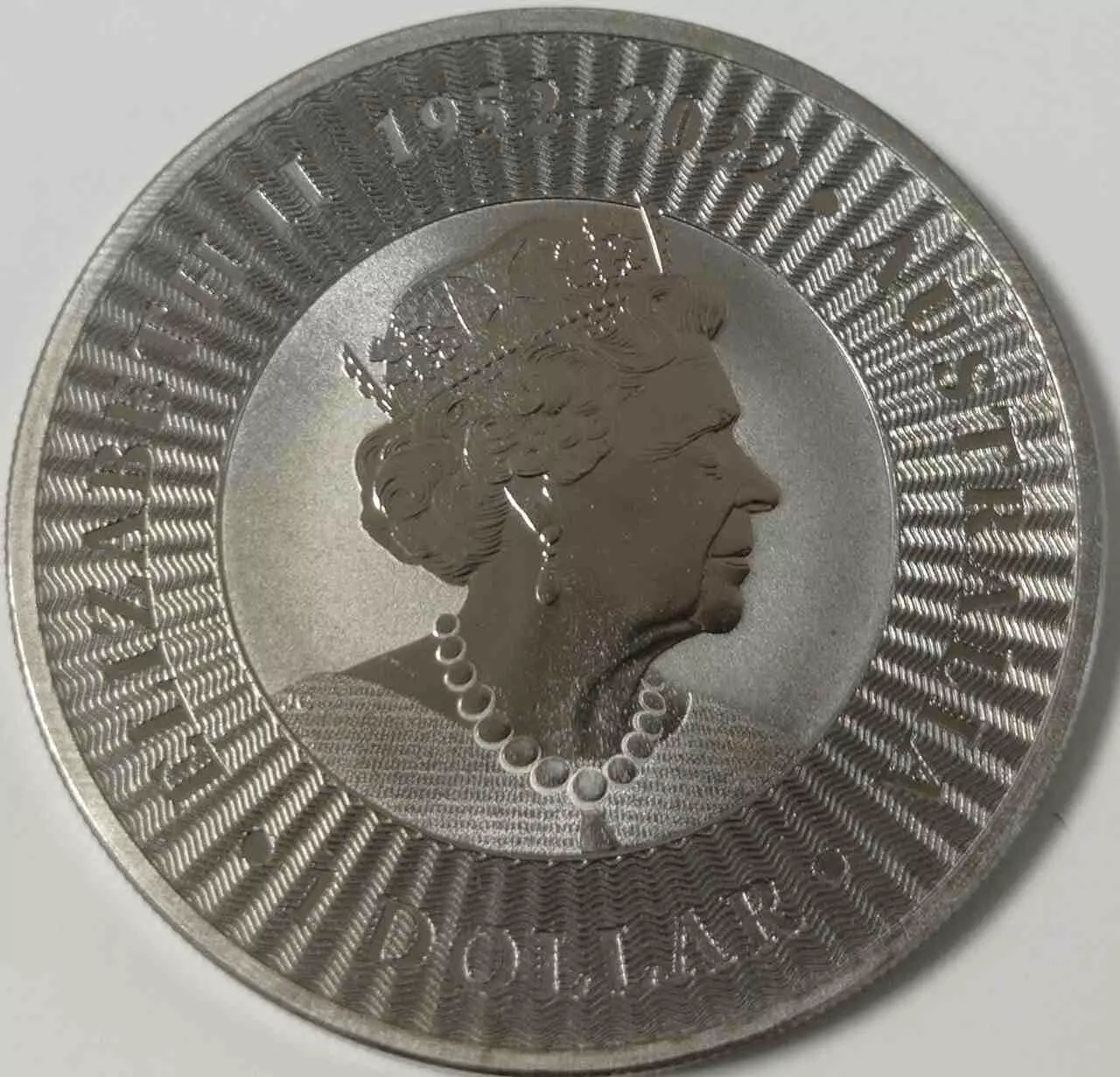 Awers przedstawia wizerunek Królowej Elżbiety II w koronie.