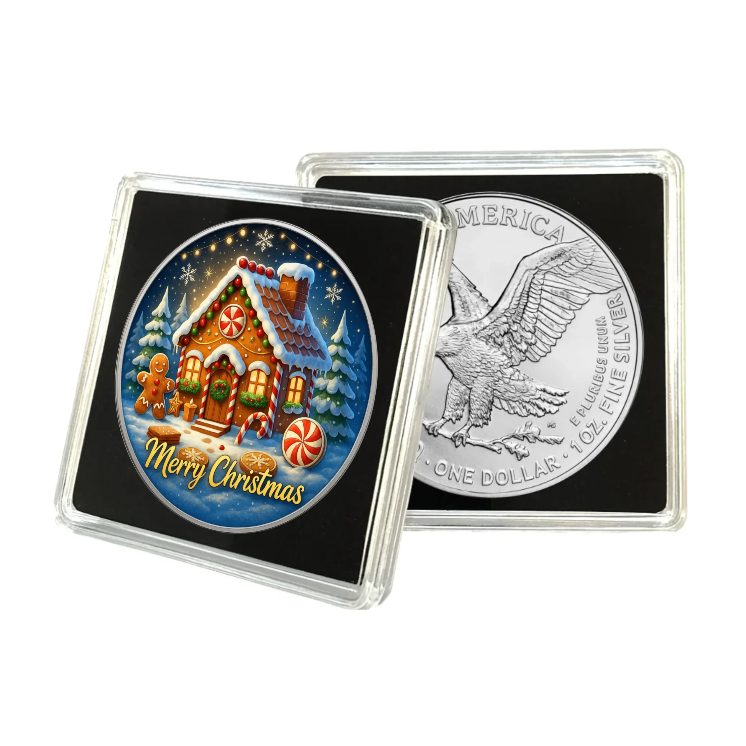 Srebrna moneta Amerykański Orzeł 1 uncja Srebra 2025 Merry Christmas: Gingerbread House