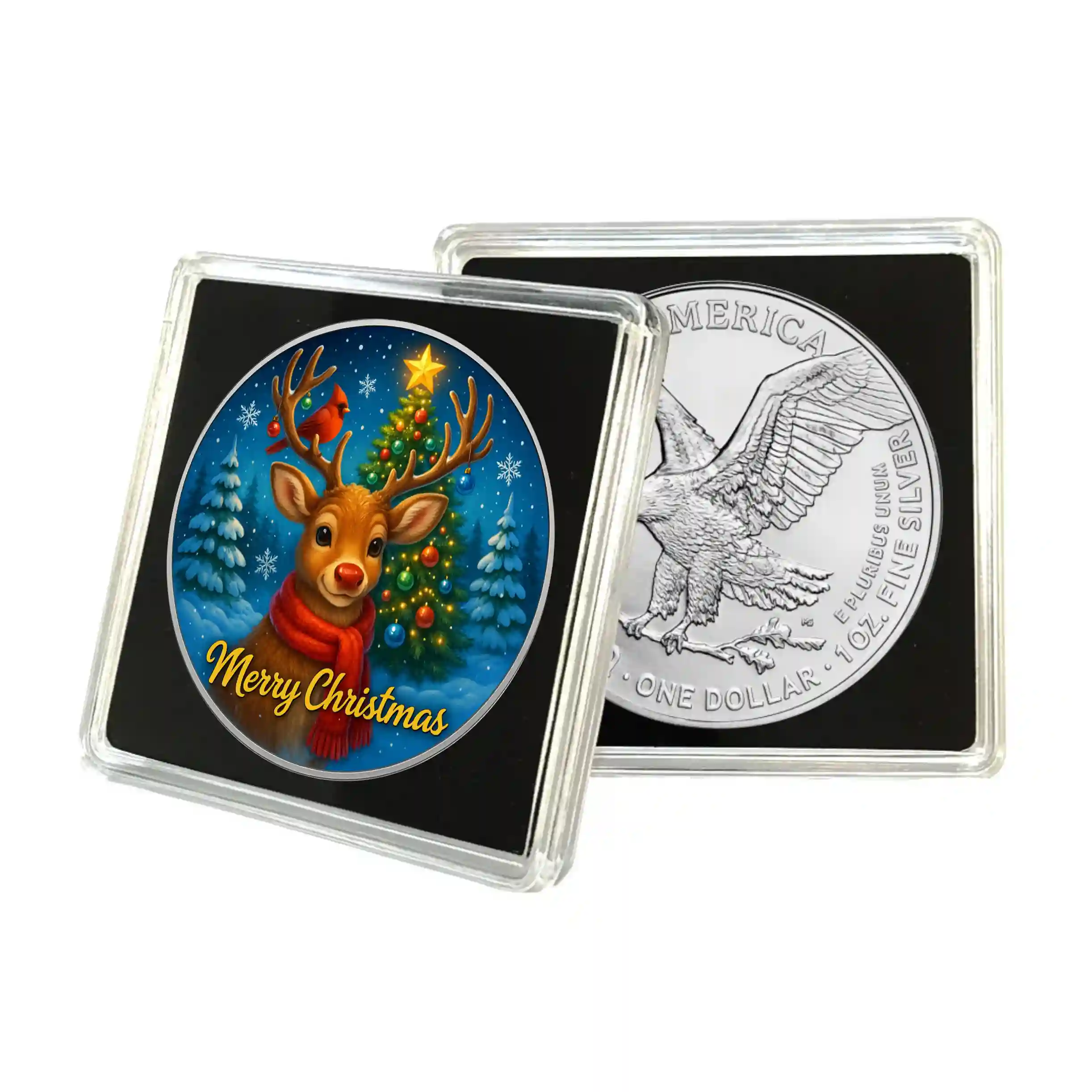 Opis produktu Srebrna moneta Amerykański Orzeł 1 uncja Srebra 2025 Merry Christmas: Reindeer