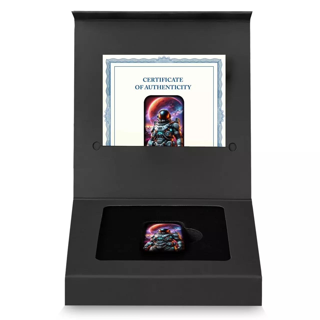 Srebrna sztabka The Astronaut doskonale wpisuje się w kategorię produktów numizmatycznych inspirowanych tematyką kosmiczną. To doskonały wybór zarówno dla kolekcjonerów poszukujących wyjątkowych egzemplarzy, jak i inwestorów, którzy pragną połączyć pasję z lokowaniem kapitału. Motyw kosmosu, astronautów i eksploracji wszechświata od lat cieszy się niesłabnącym zainteresowaniem, co czyni ten produkt ponadczasowym.