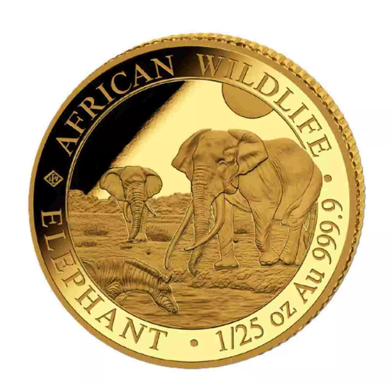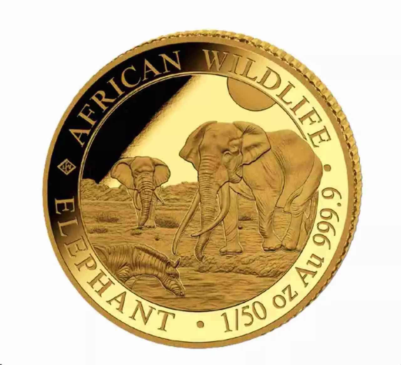 Słoń Somalijski zawiera 1/50 uncji czystego złota najwyższej próby. Niska waga umożliwia rozpoczęcie inwestycyjni w złoto przy mniejszym nakładzie kapitału oraz elastyczność przy ewentualnej odsprzedaży.