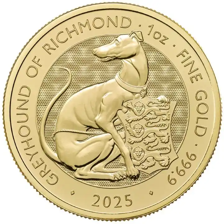 Opis produktu Złota moneta The Royal Tudor Beasts: The Greyhound of Richmond 1/4 uncji Złota 2025