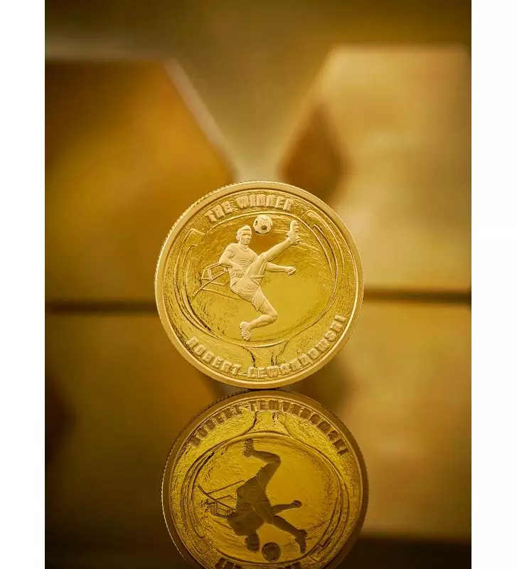 Zwcięzca to druga odsłona złotej monety kolekcjonerskiej upamiętniająca wyjątkową karierę najlepszego polskiego piłkarza, Roberta Lewandowskiego. Moneta stanowi symbol pasji, która prowadzi do zwycięstwa, oraz siły, która inspiruje miliony fanów na całym świecie. Zwycięzca stanowi wyjątkowe połączenie sportowej pasji, prestiżu i numizmatycznej doskonałości. Idealnie sprawdzi się dla kolekcjonerów poszukujących unikatowych sportowych monet, fanów Roberta Lewandowskiego czy inwestorów, którzy cenią złoto i limitowane edycje o wysokim potencjale wzrostu wartości.