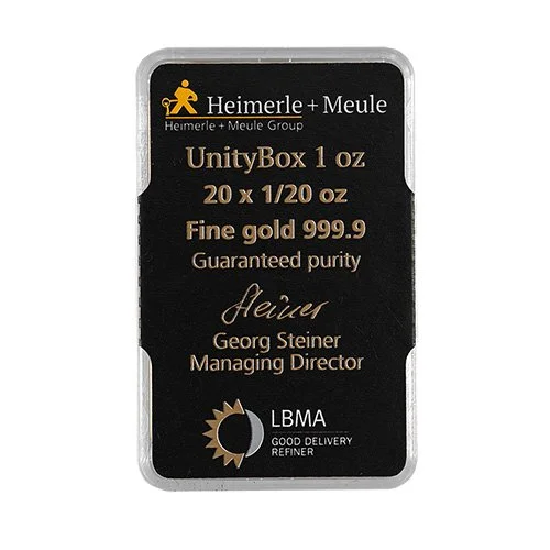 Złota sztabka 20 x 1/20 uncji złota Heimerle + Meule UnityBox